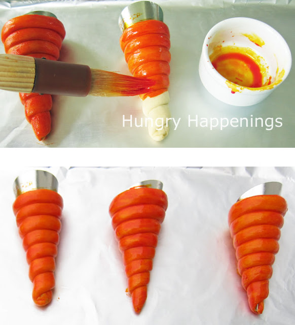 V kolikor ne želite pobarvati korenčkov, jih lahko premažete samo z jajcem. Pečeni korenčki bodo zlato rumene barve.